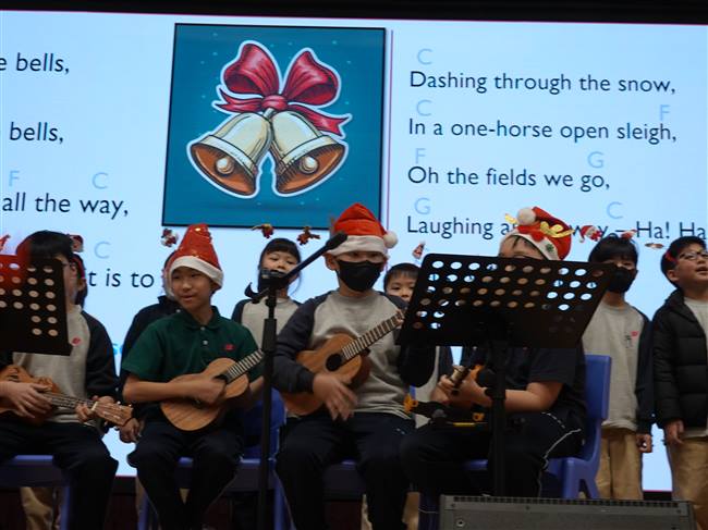 本校於12月17日於禮堂舉行了一場由英文組及音樂組聯合舉辦的跨科聖誕歌唱表演。Ukulele課程的學生以優秀演奏展現音樂才華,低年級的學生更以清澈歌聲在舞台上獻唱,充分展現出多元的音樂天賦。